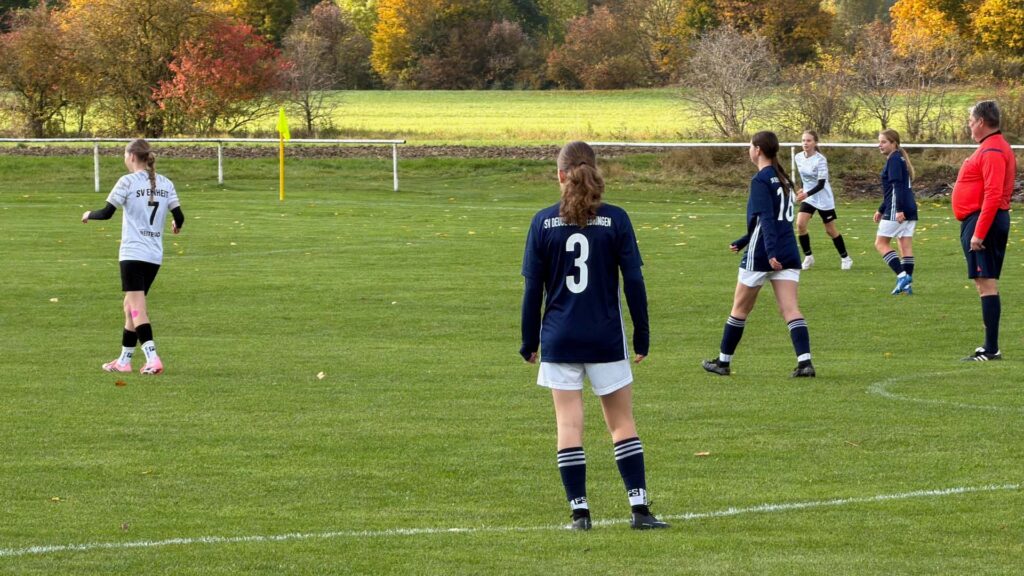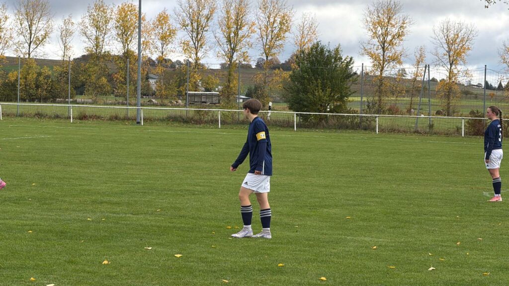 Mit viel Energie und Entschlossenheit übernahmen unsere Mädels sofort die Kontrolle. Die Gäste wurden früh unter Druck gesetzt und meist tief in die eigene Hälfte gedrängt. Mehrfach klärte Breitenbach in höchster Not zur Ecke, doch in der 18. Minute war es so weit: Nach einer kurz gespielten Ecke traf Jojo mit einem präzisen Linksschuss direkt ins lange Eck – 1:0!