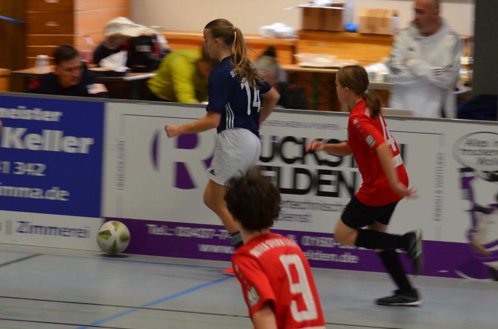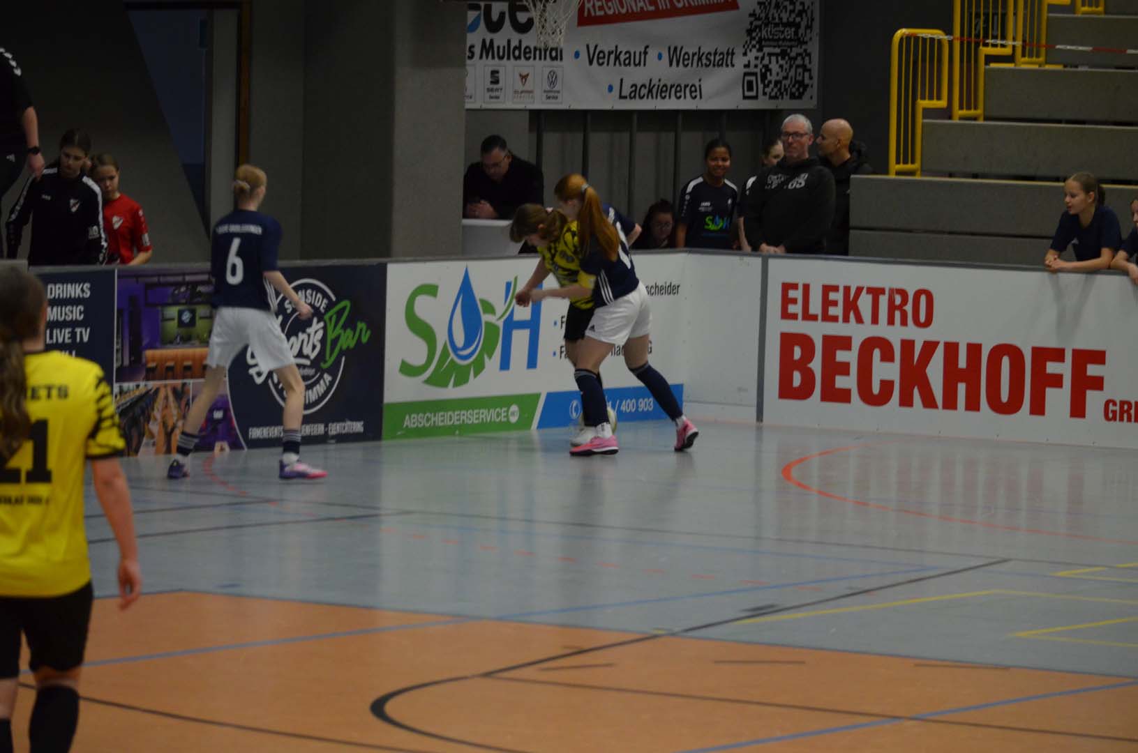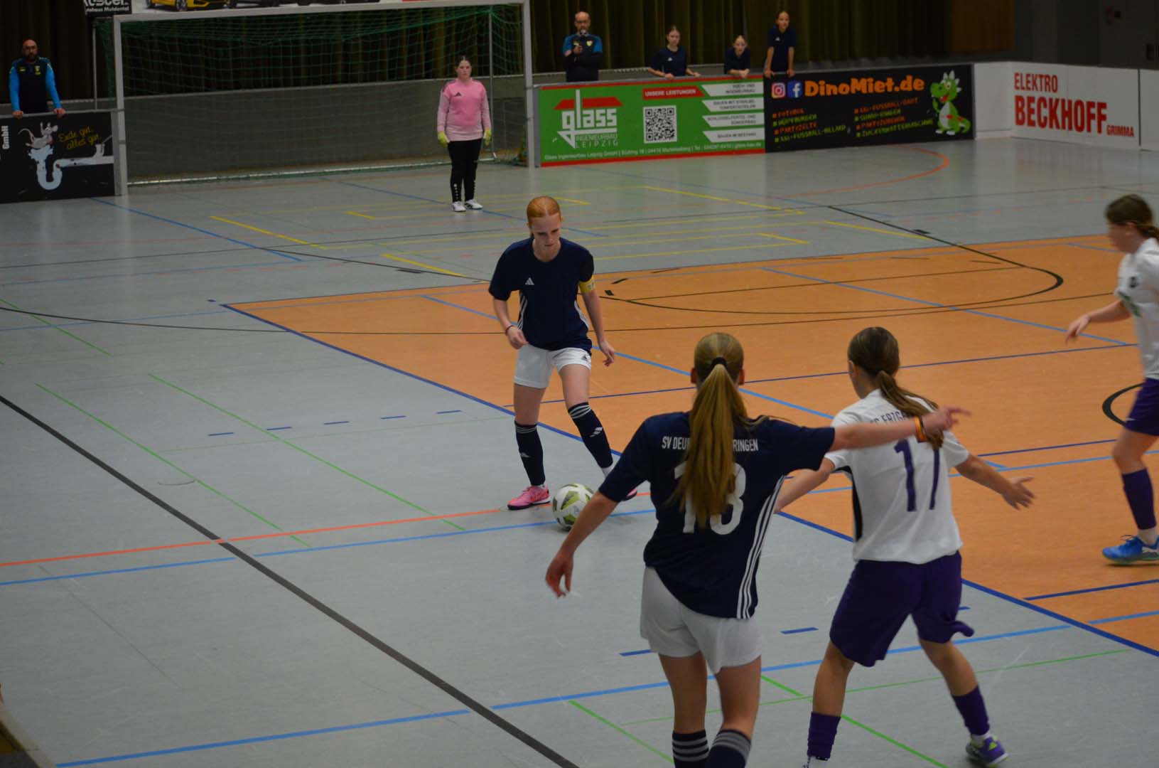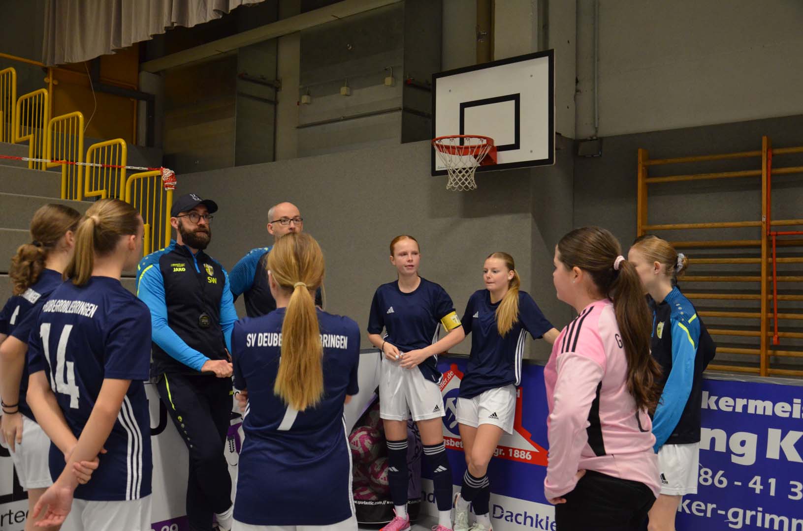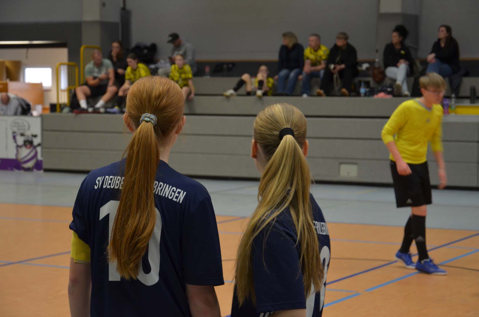 In der Halle wartete ein Spielfeld mit kompletter Bande. Für die Mädels ungewohnt, aber das Spieltempo war hoch und Unterbrechungen gab es kaum. Der SV Deube griff erst im vierten Turnierspiel ein und konnte zuvor alle Gegner beobachten. Der Start ins Turnier gelang. Die ersten beiden Spiele wurden gewonnen.