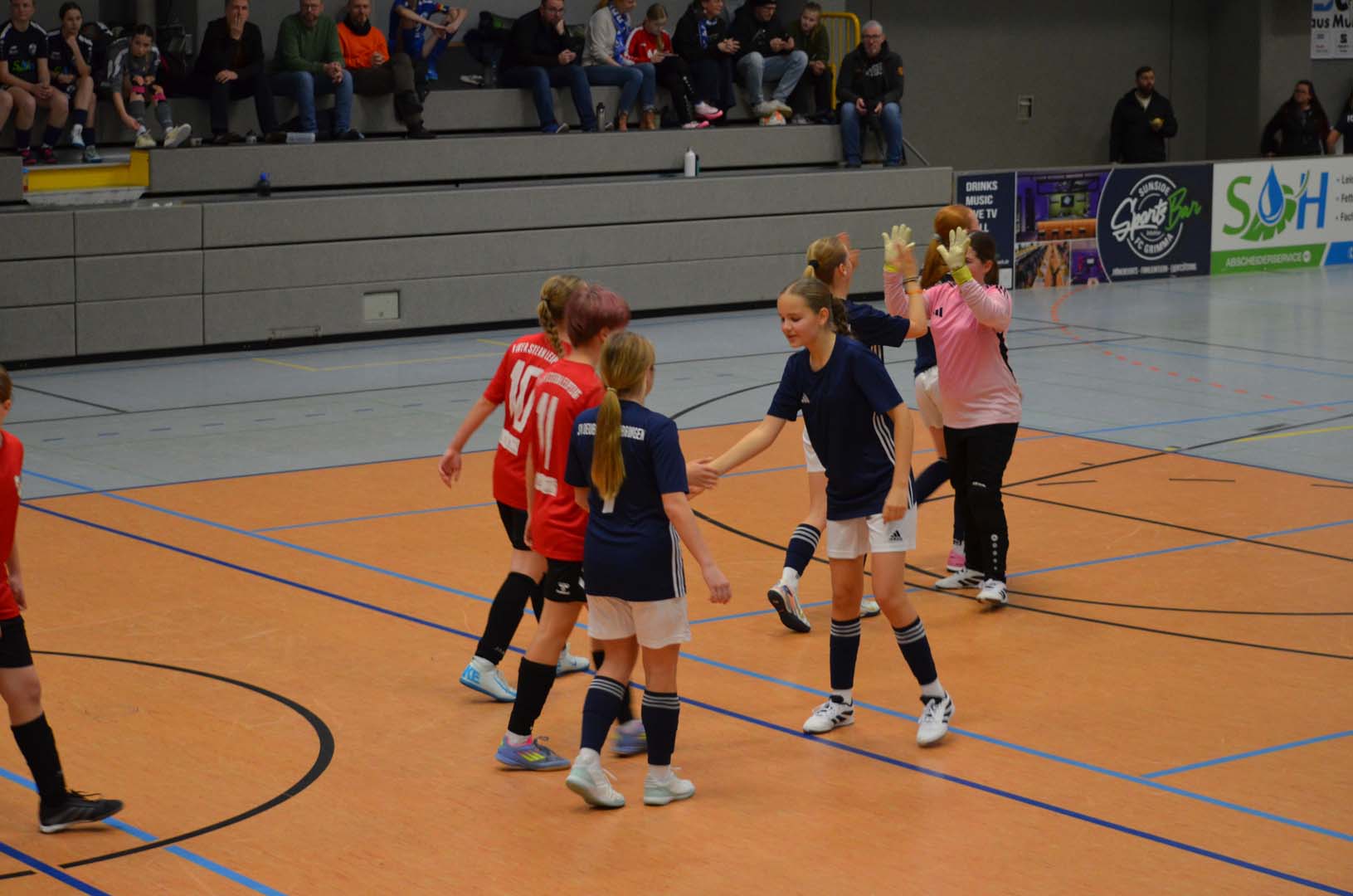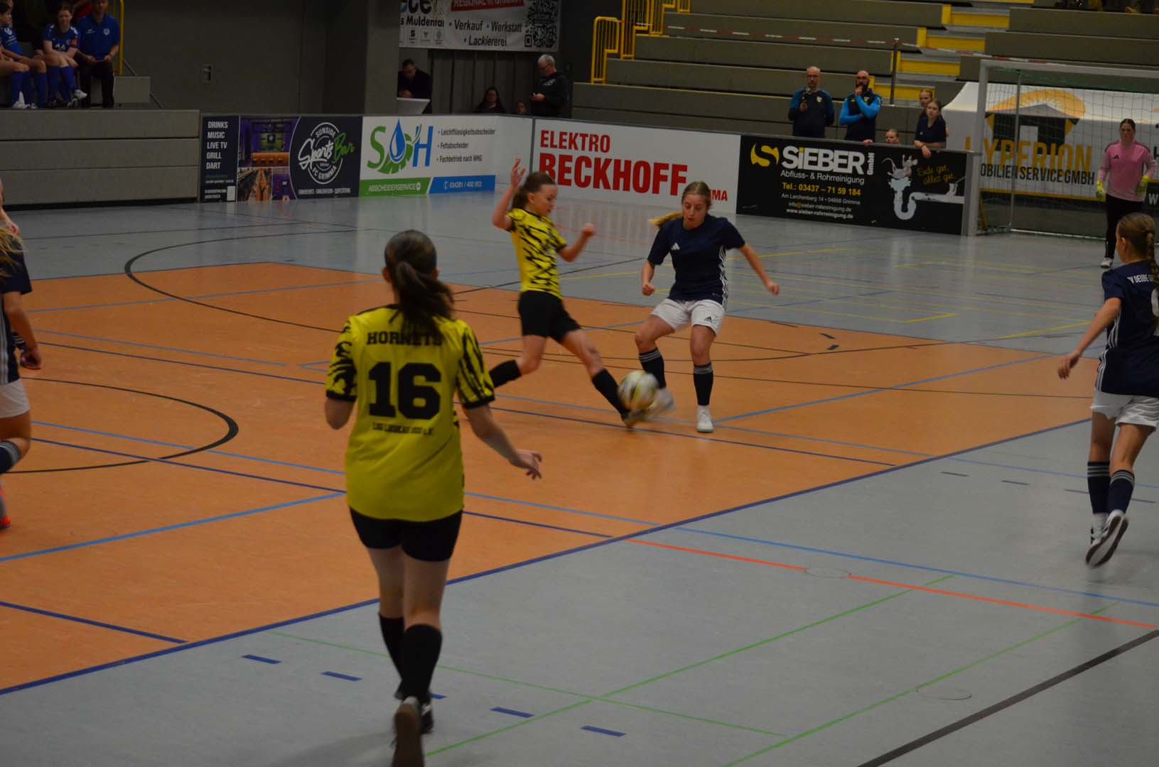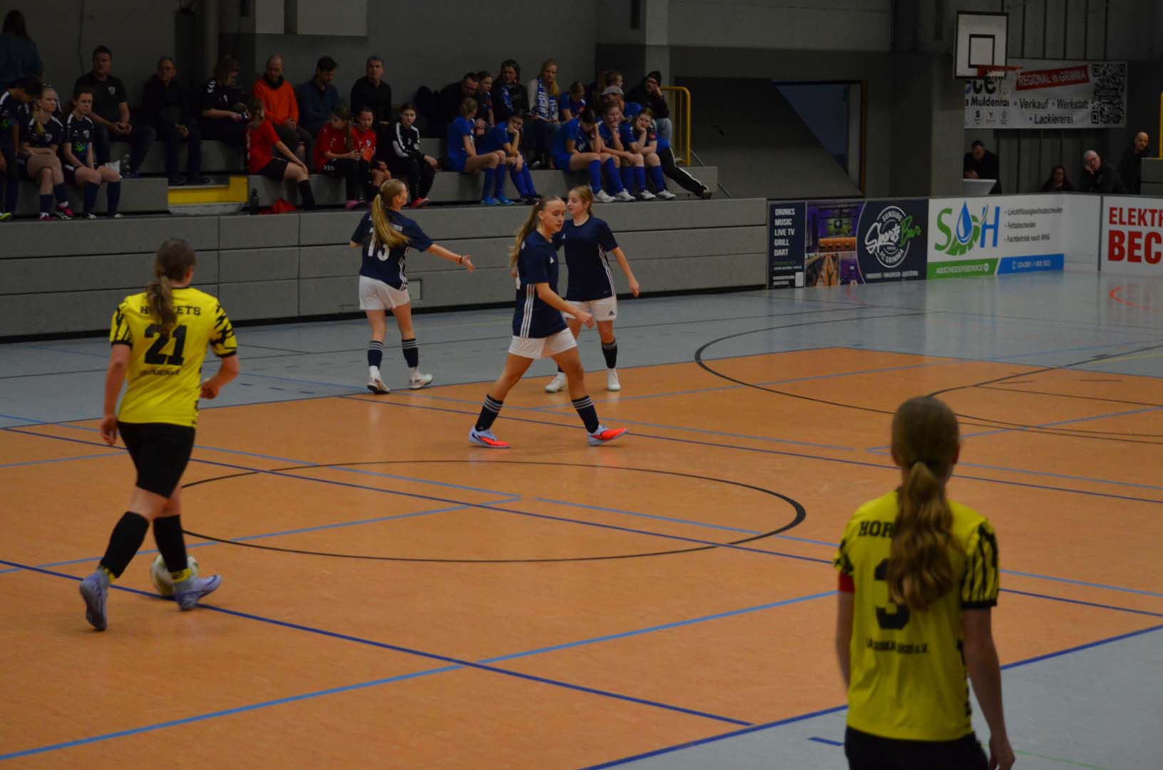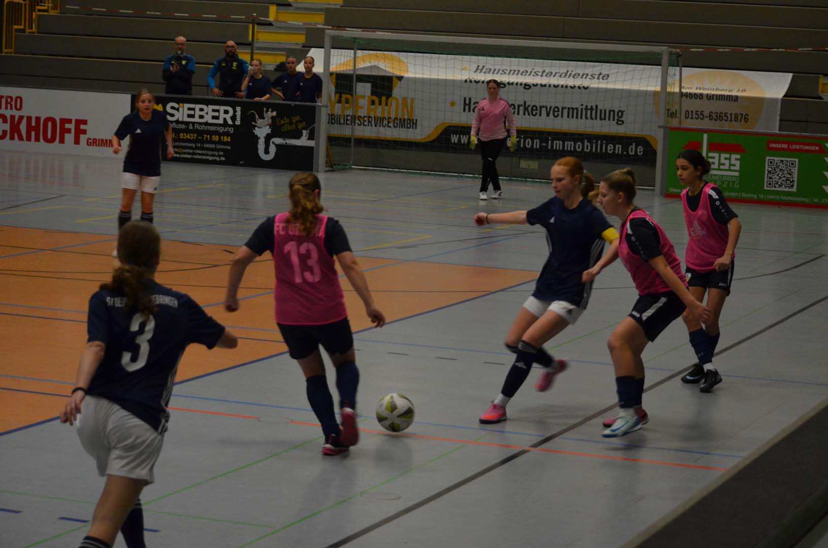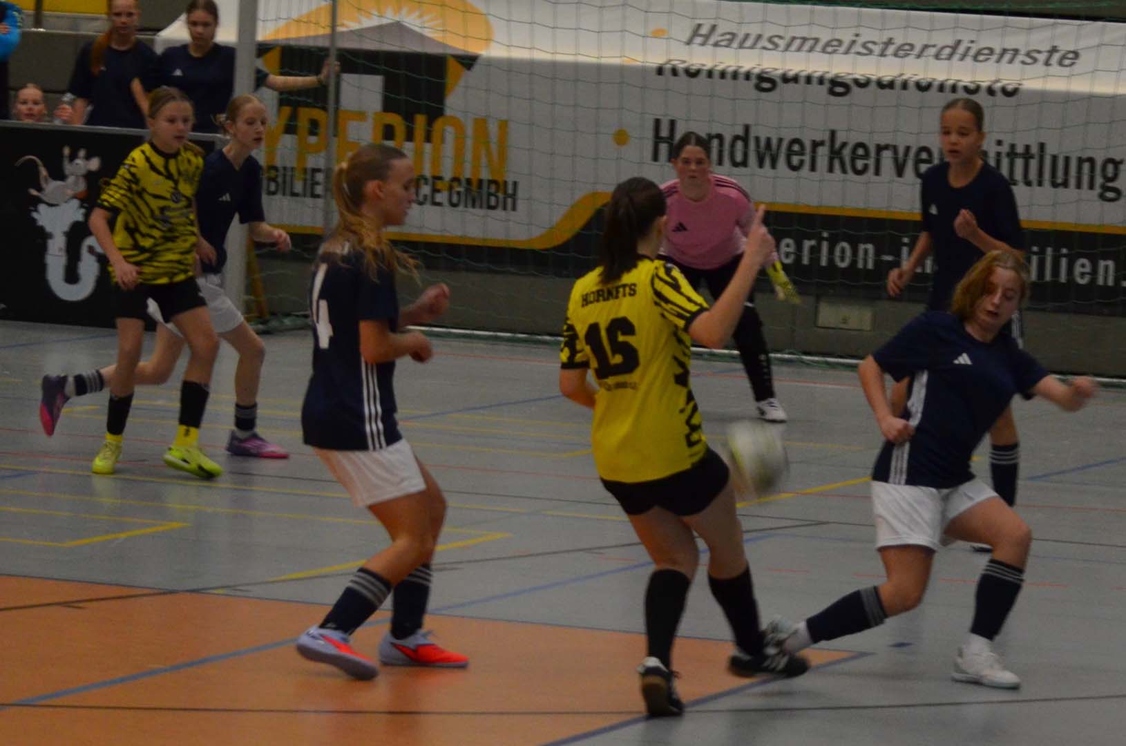 In der Halle wartete ein Spielfeld mit kompletter Bande. Für die Mädels ungewohnt, aber das Spieltempo war hoch und Unterbrechungen gab es kaum. Der SV Deube griff erst im vierten Turnierspiel ein und konnte zuvor alle Gegner beobachten. Der Start ins Turnier gelang. Die ersten beiden Spiele wurden gewonnen.