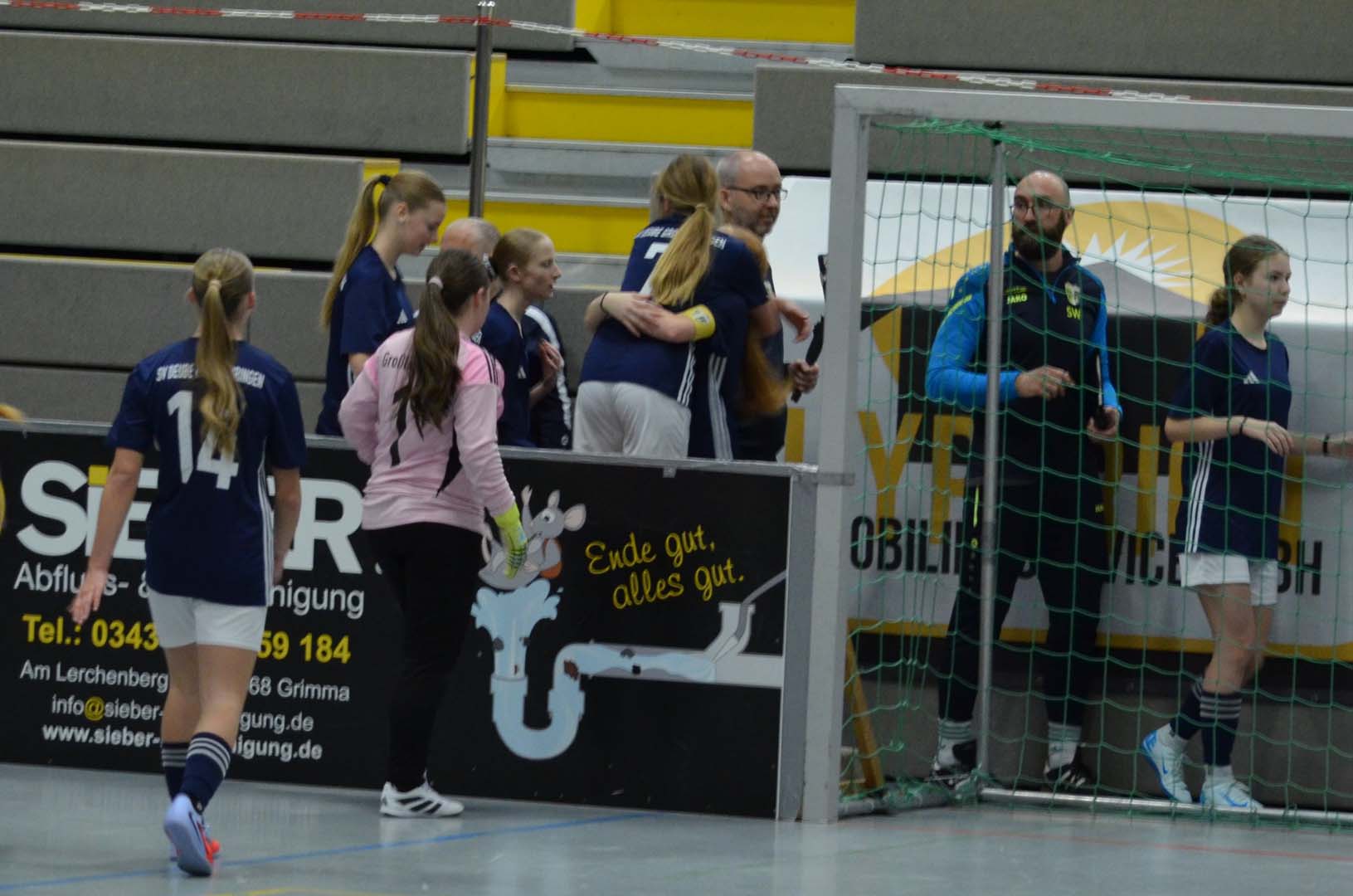Vor dem letzten Spiel war die Ausgangslage klar. Ein Unentschieden gegen Roter Stern Leipzig hätte zum Turniersieg gereicht. Die Mädels wollten mehr. Sie kämpften nicht nur, sondern spielten überzeugenden Hallenfußball. Nach dem Abpfiff stand ein 2:1 auf der Anzeigetafel. Turniersieg für den SV Deube.