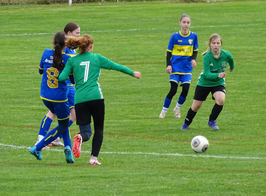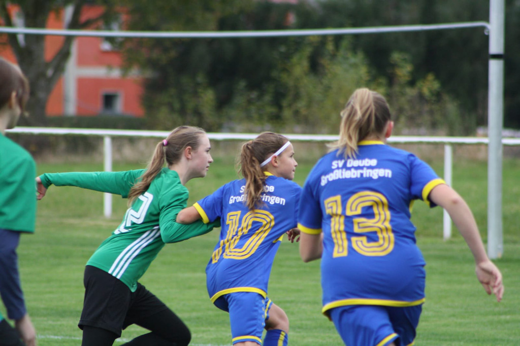 Vier Wochen nach dem Pokalspiel trafen wir erneut auf die Mädels des TSV Großfahner, diesmal auf heimischem Boden in Großliebringen. Während das Pokalspiel noch ein Duell auf Augenhöhe war, dominierten diesmal die Gäste deutlich. Bereits in der 12. Minute fiel das 0:1 für den TSV, als der Ball nach einem unglücklichen Abwehrversuch über die Linie kullerte. Von den Deube-Mädels war bis dahin wenig zu sehen.