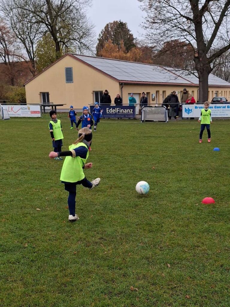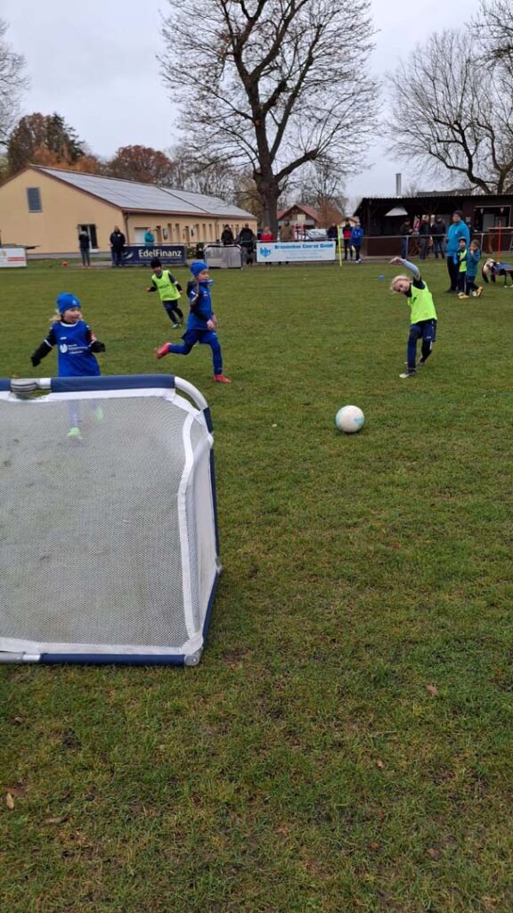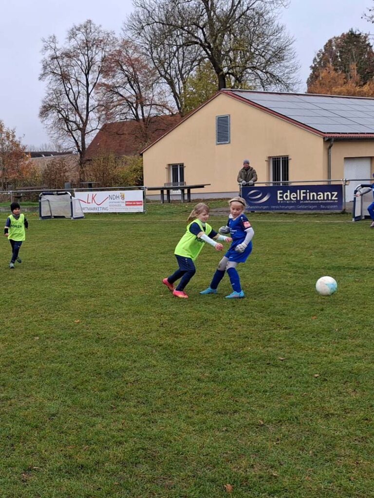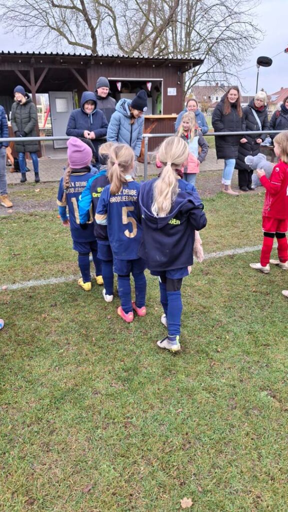 Am Turnier teilgenommen haben drei Vereine mit fünf Mannschaften, sodass jede Mannschaft mit Hin- und Rückrunde acht Spiele bestreiten konnte. Die Kleinsten von Großliebringen starteten gleich im ersten Spiel gegen eine starke Gastgebermannschaft. Wir gingen zwar in Führung, mussten uns am Ende der acht Minuten Spielzeit aber geschlagen geben. Wie so häufig ein holpriger Start in das Turnier. Im nächsten Spiel zeigten die Mädels bereits mehr Kampfgeist und wurden mit einem Punkt belohnt.