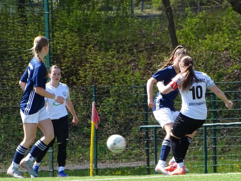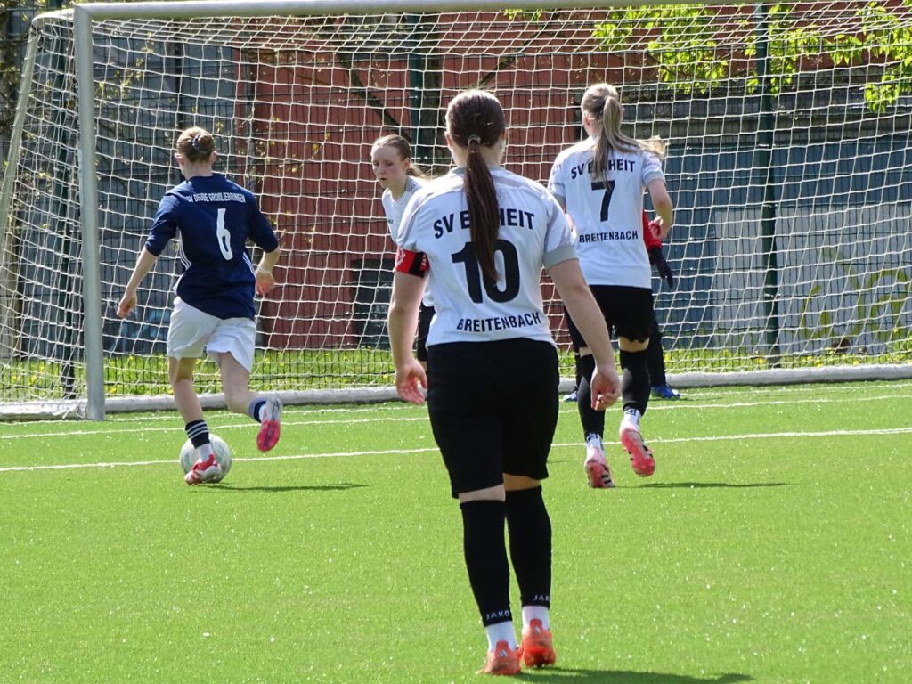 Der Start in die Partie verlief jedoch holprig. In den ersten 25 Minuten fanden unsere Mädels nicht richtig ins Spiel. Breitenbach agierte körperlich sehr präsent, war eng an den Gegenspielerinnen und nutzte die Lücken im Mittelfeld sowie in der letzten Reihe konsequent aus. So stand es nach gut 25 Minuten bereits 2:0 für die Gastgeberinnen.