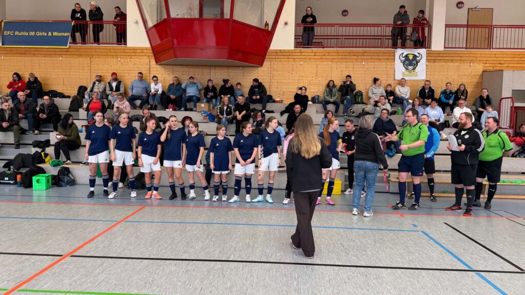 Am 8. Februar 2026 reiste unsere Mannschaft zur Finalrunde der Thüringer Hallenlandesmeisterschaft nach Tiefenort. Trotz des grauen Nieselwetters bei der Abfahrt am frühen Morgen war die Stimmung im Team hervorragend. In der Halle angekommen, wurde schnell klar, dass die Deube die größte und lautstärkste Fangruppe stellte, was den Spielerinnen einen zusätzlichen Motivationsschub gab.