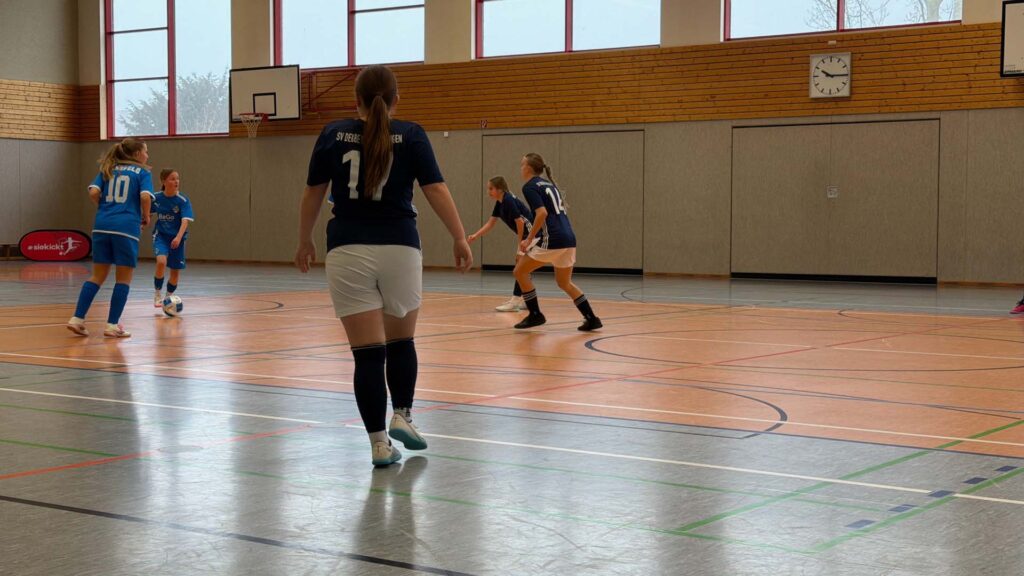 Der sportliche Auftakt verlief nach Maß. Unter den ständigen Anfeuerungen der mitgereisten Anhänger startete das Team mit einem Sieg in das Turnier. Es folgten ein Unentschieden und ein weiterer Sieg, sodass unsere Mannschaft nach drei Spielen vorübergehend die Tabellenspitze übernahm. Im darauffolgenden Duell gegen den ESV Lok Meiningen entwickelte sich eine hochintensive Partie. Die Spielerinnen investierten alles und suchten konsequent die Zweikämpfe. Dass es lange spannend blieb, war auch ein Verdienst von Chayenne, die das Team mit mehreren glänzenden Paraden vor einem Rückstand bewahrte. Ein einziger Angriff konnte letztlich nicht entscheidend verteidigt werden, was zur knappen 0:1-Niederlage führte.