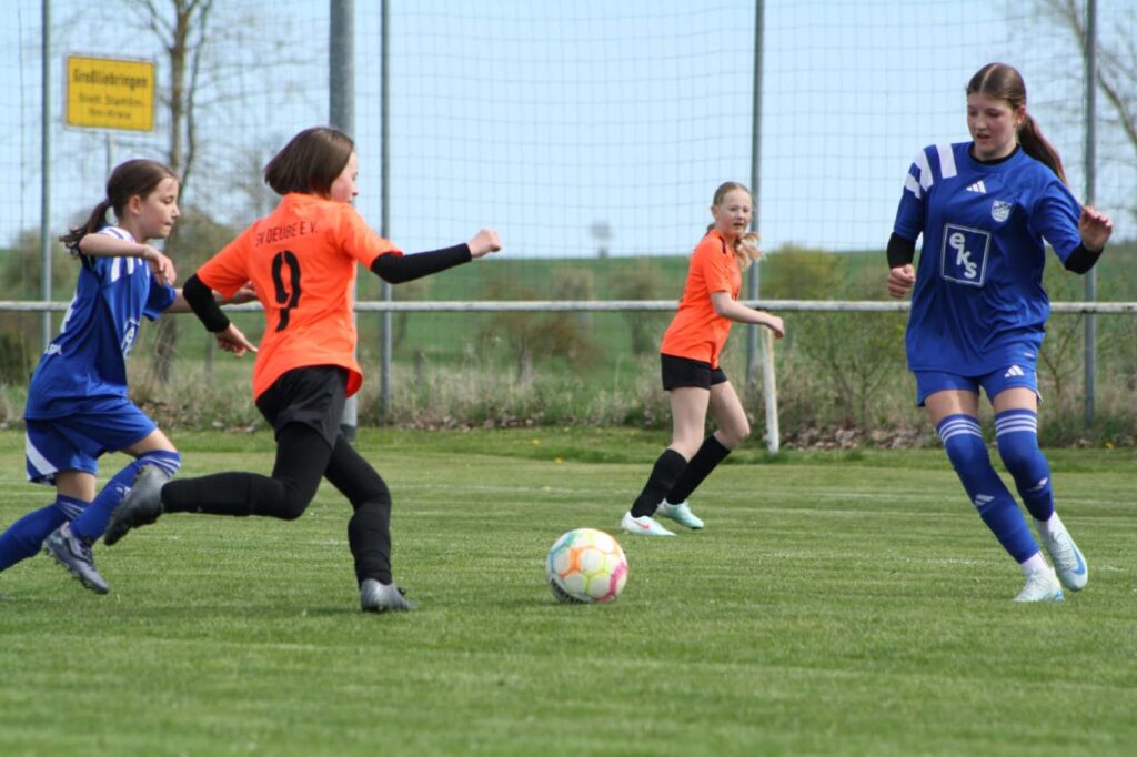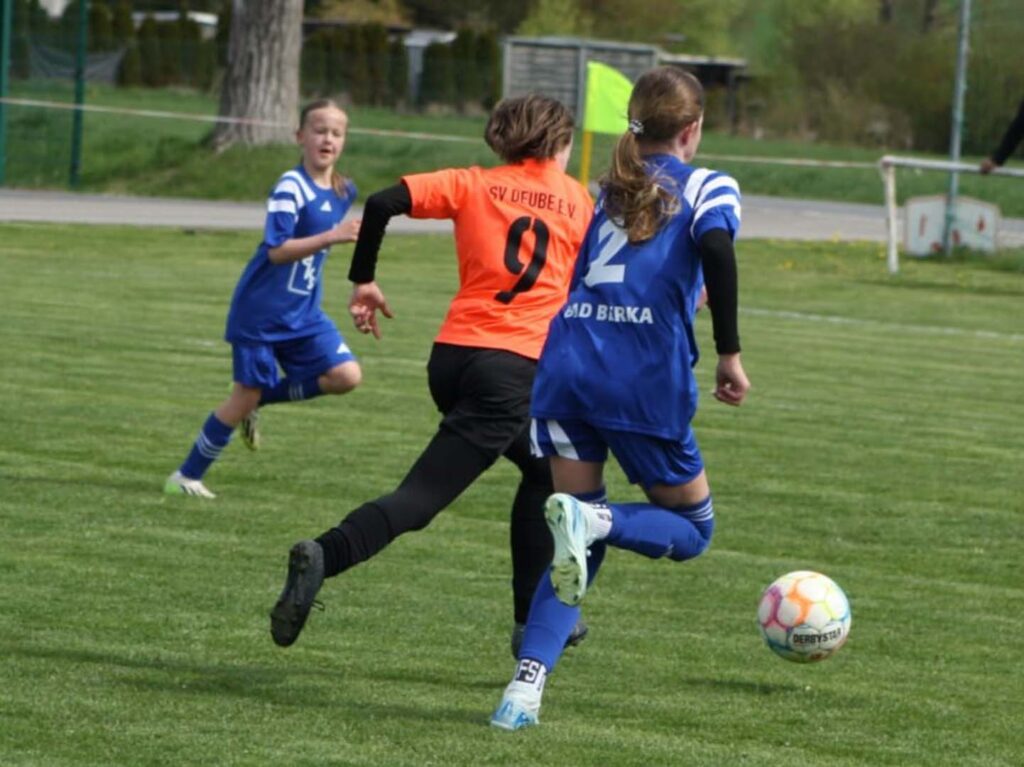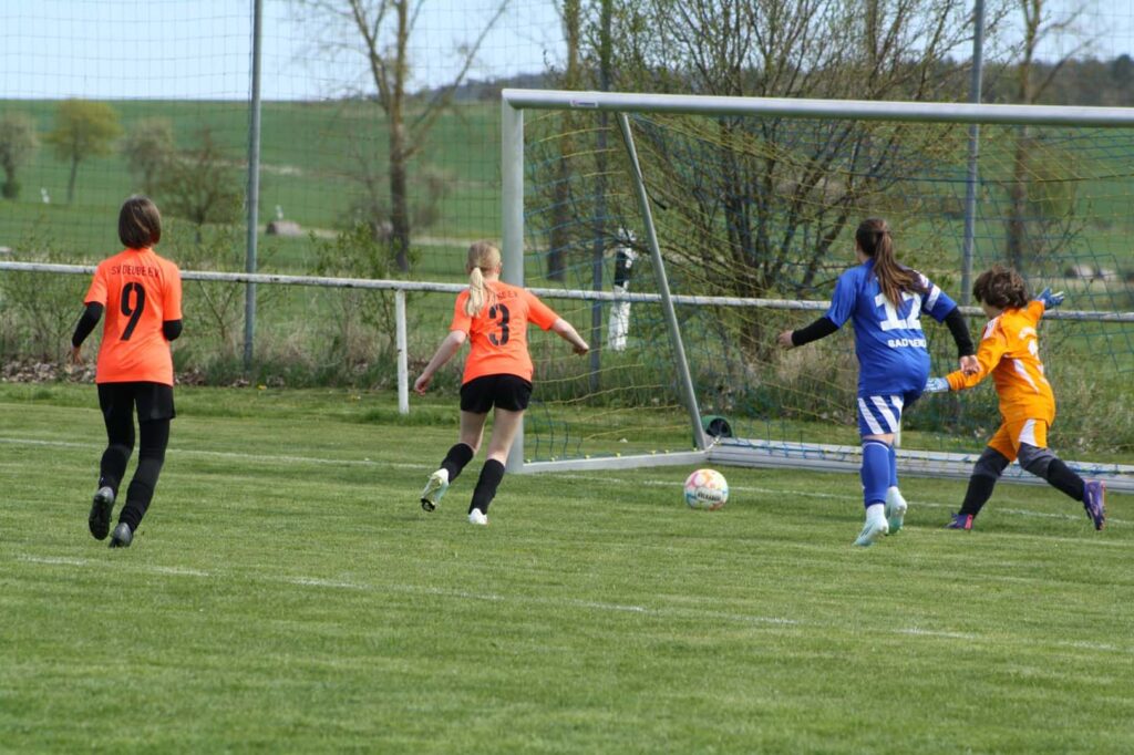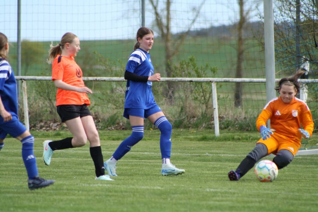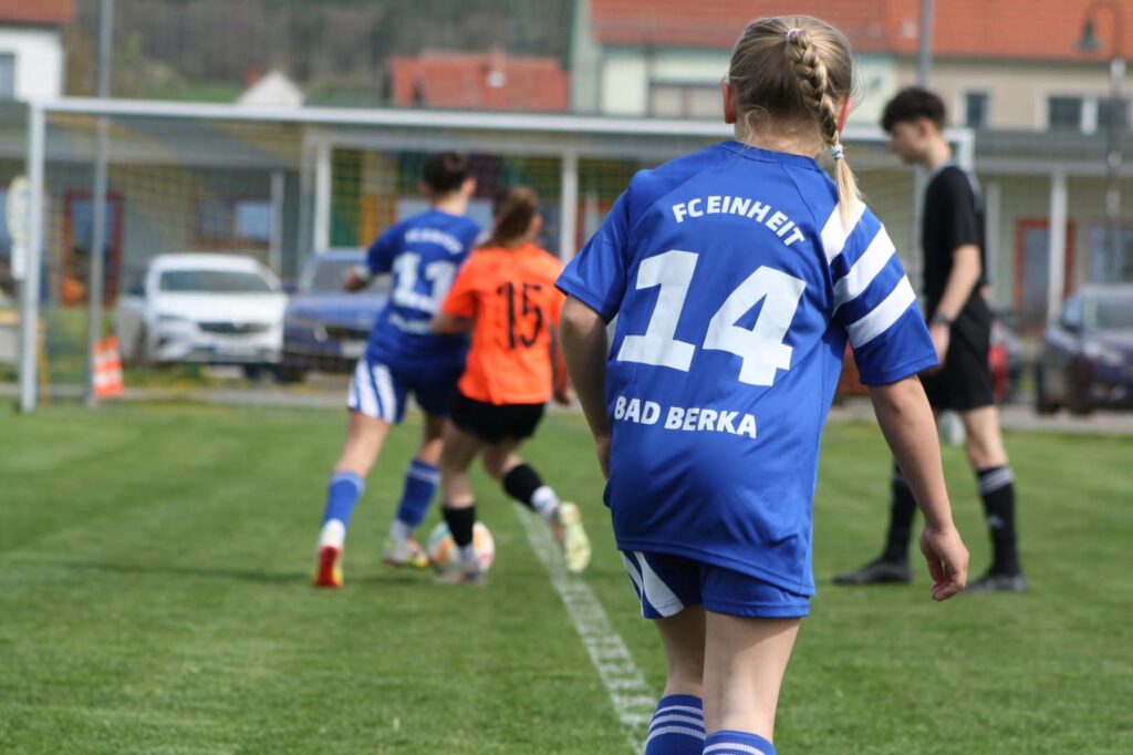 Unsere D-Juniorinnen konnten am vergangenen Spieltag einen überzeugenden 4:0-Heimsieg feiern. Gegen die fairen Gäste aus Bad Berka zeigten unsere Mädels eine geschlossene Mannschaftsleistung und hatten das Spiel über weite Strecken im Griff. Zu Beginn entwickelte sich eine ausgeglichene Partie, in der beide Teams den Weg nach vorne suchten und zu ersten Abschlüssen kamen.