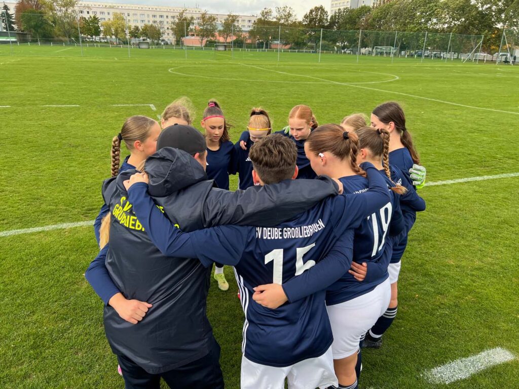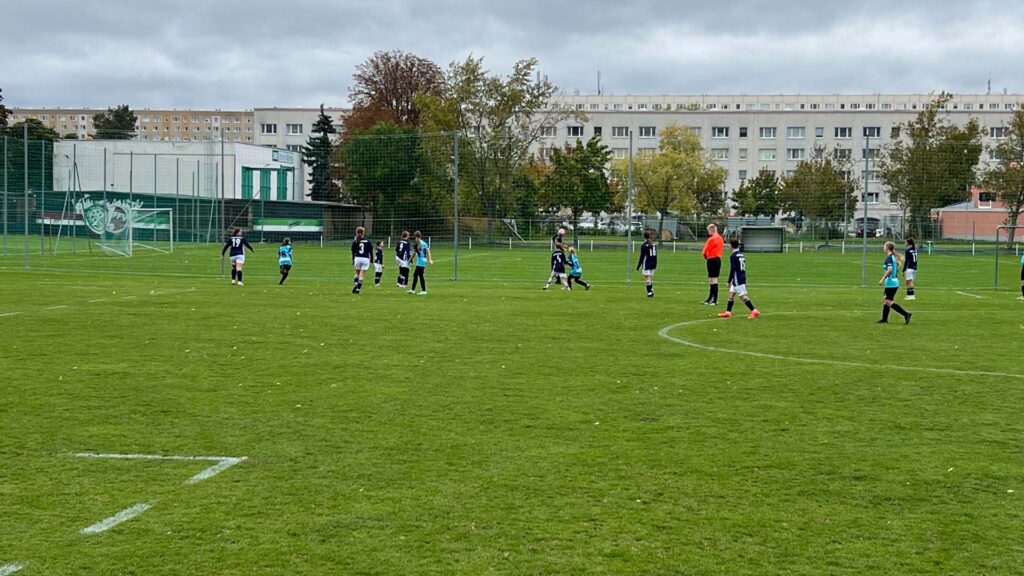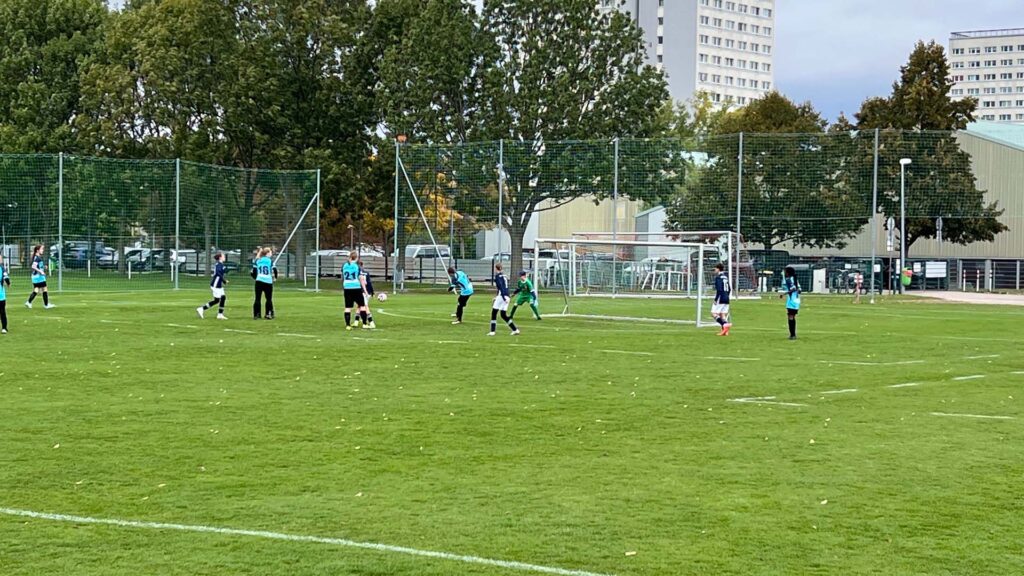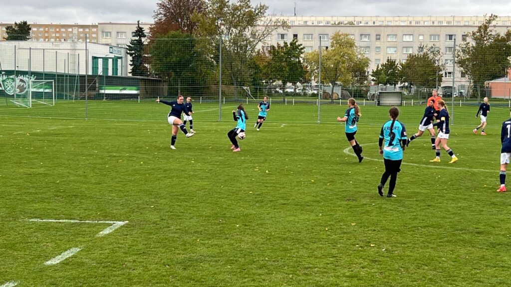 Am vergangenen Wochenende stand für unsere C-Juniorinnen das Auswärtsspiel beim 1. FFV Erfurt auf dem Programm. Bei kühlem, aber trockenem Wetter und starkem Wind ging es auf den Platz – diesmal mit Hannah als Ersatztorhüterin zwischen den Pfosten.